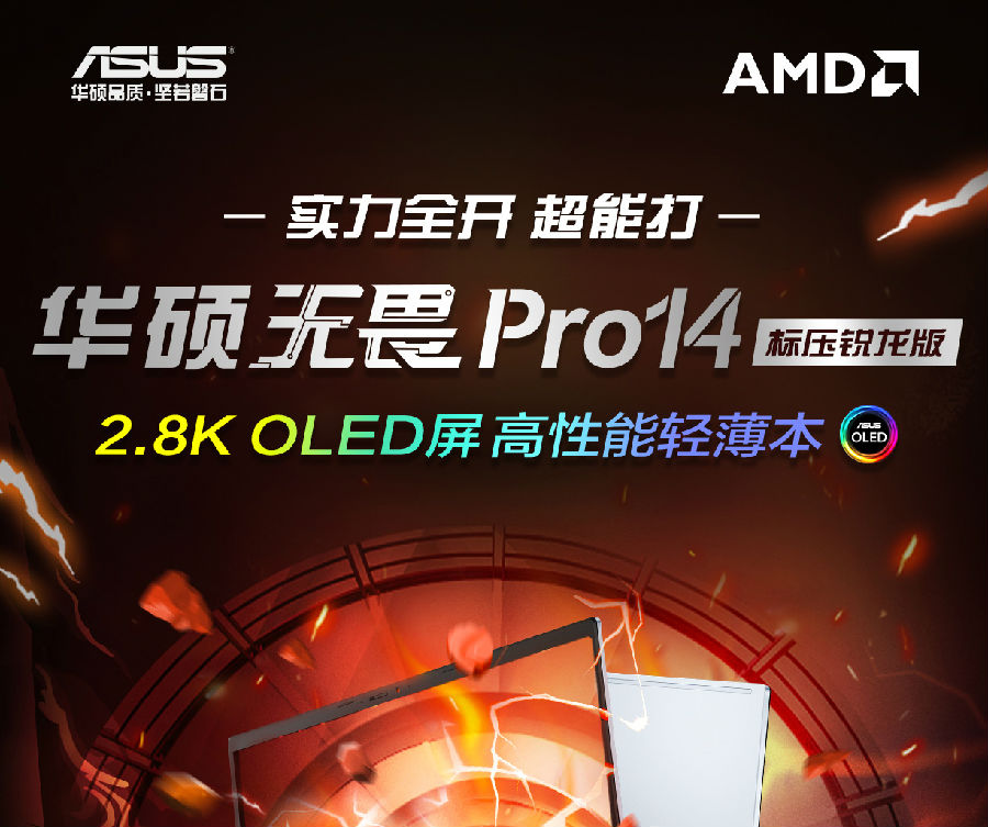 華碩無畏Pro14 標(biāo)壓銳龍版 2.8K OLED屏輕薄筆記本電腦