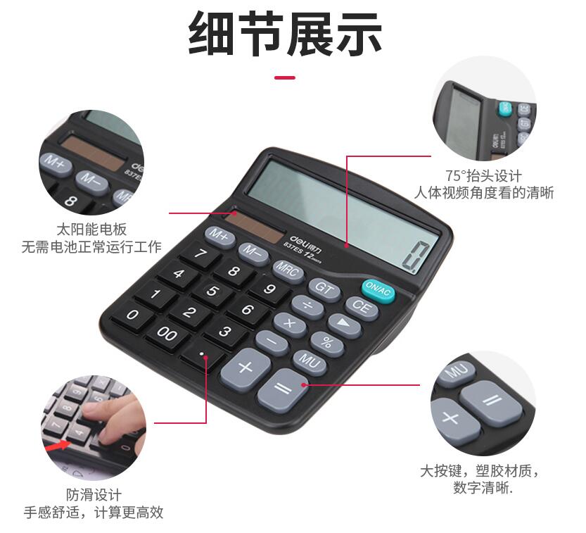 得力837計算器辦公用會計專用太陽能學(xué)生用帶語音大學(xué)財務(wù)小號便攜雙電源計算機(jī)器按鍵文具辦公用品大號