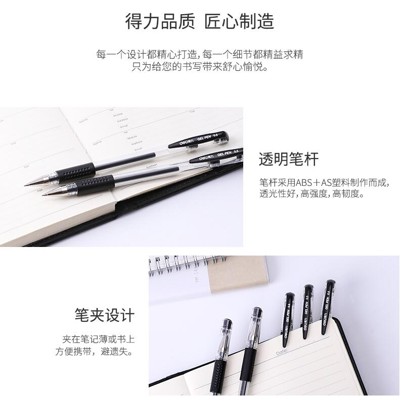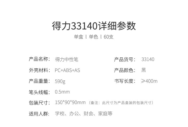 A3 彩色打印機 得力文具33140 中性筆學生考試量販式黑筆水筆碳素筆0.5mm 60支裝